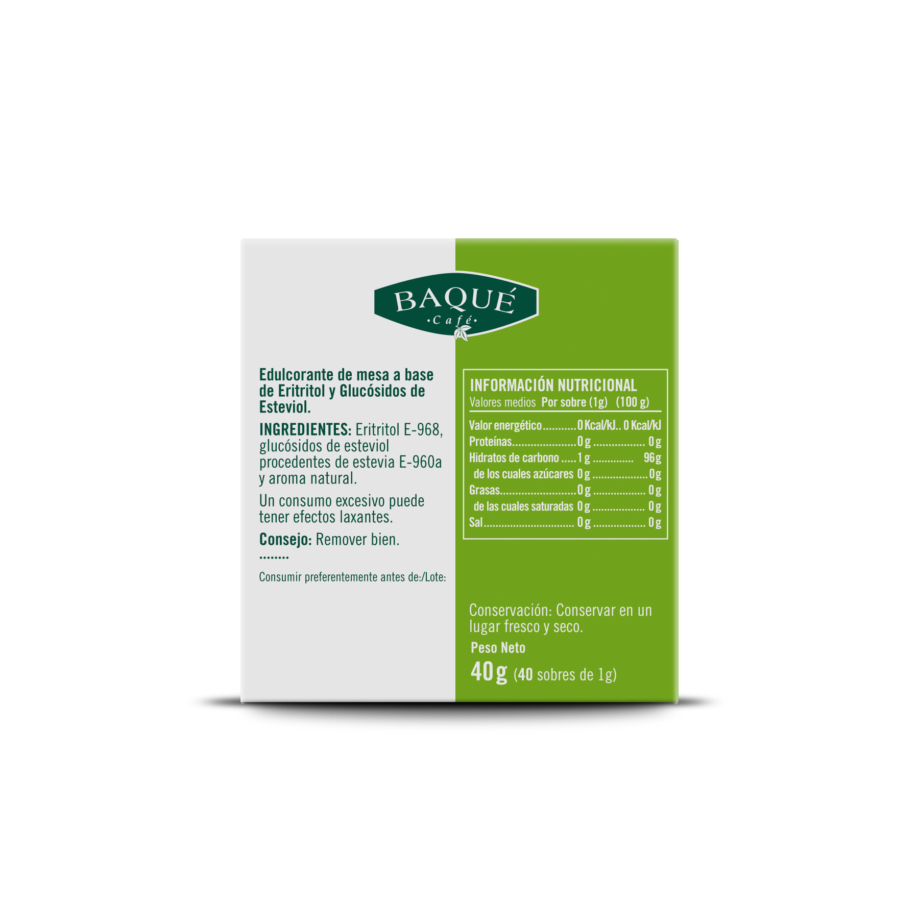 Eritritol, esteviol glukosidoa eta aroma naturalak.